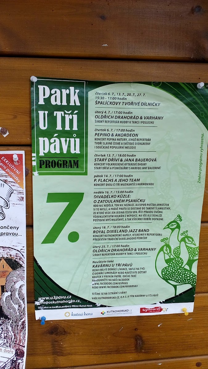 If you're looking for a charming spot to relax in Kutná Hora, Park Three Peacock is the place to be. Nestled at Palackého nám. 379, this café boasts a delightful menu that caters to both adults and children. Patrons rave about the cozy atmosphere and the excellent coffee paired with mouth-watering cakes. The café's standout feature is its expansive, forest-like garden which provides a perfect setting for families. Kids can enjoy a playground while parents sip on refreshing homemade lemonade or good coffee under shaded areas.